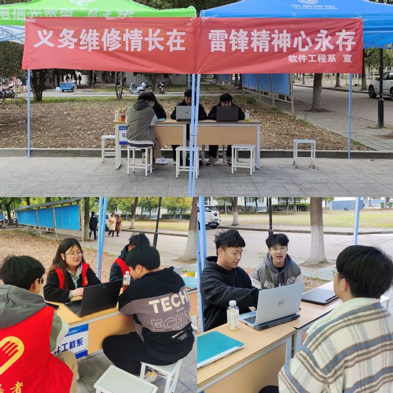 为解决同学们日常使用计算机过程中遇到的问题,以实际行动为同学们排忧解难,2023年3月25日,软件工程系在宿管中心门口举办了以“义务维修情长在,雷锋精神心永存”为主题的义务维修活动,此次活动面向全校师生。